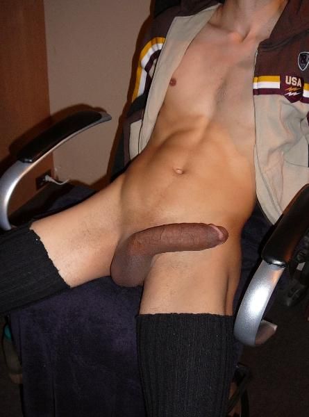 nice bod! why is his cock a different color than he is and wtf is he wearing on his legs?